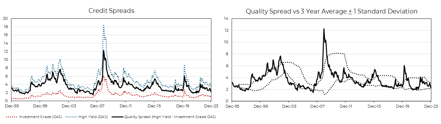 Source: Bloomberg / Aptus; Quality Spread = the difference in between high yield and investment grade spread