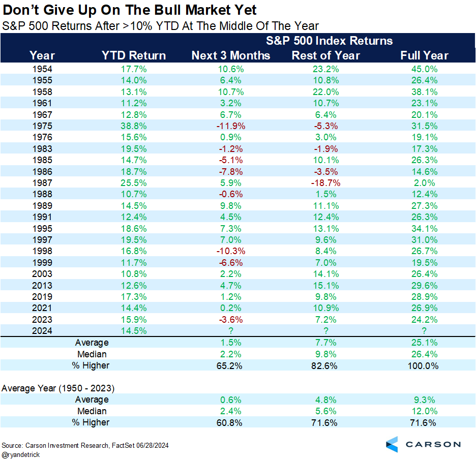 Arch: and good first halves for stocks have generally led to average or better second halves