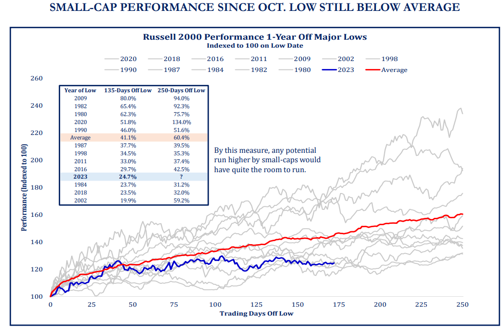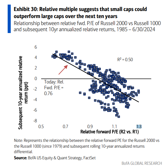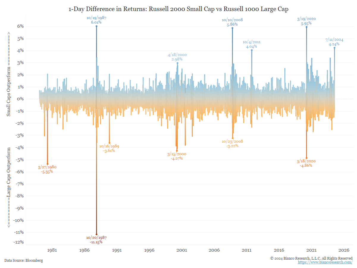 Dave: The chart below was pre-rotation day, but shows how much room remains for the small-cap reversion opportunity