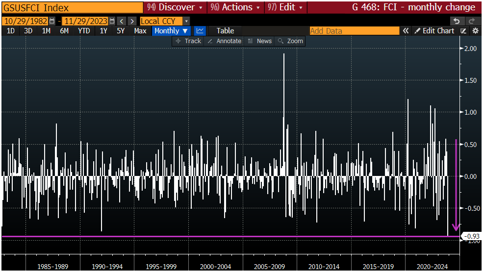According to the Goldman Sachs Financial Conditions Index, the month of November saw the largest easing in US financial conditions of any single month in the past four decades.