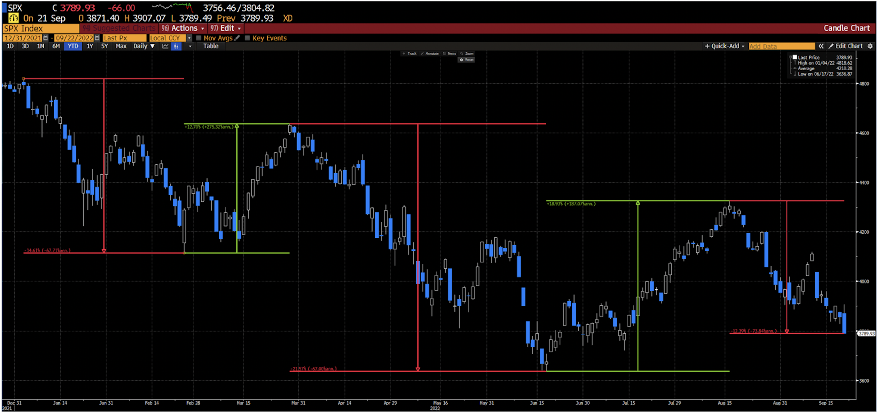 - 3/30/2022 to 6/17/2022: -21.57%