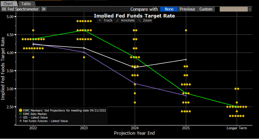 The Fed delivered a more hawkish announcement than the market expected. Yes, we got the 75bps hike but the year-end rate of 4.25% – 4.50% and terminal rate of 4.5% -4.75% were higher than markets expected. The somewhat rosy set of economic projections in June have been replaced by a slightly more sober outlook, yet they still err on the side of a best-case scenario. The bottom line is that with price pressures still stubbornly elevated, Fed officials have reiterated their resolve to taming inflation and reinstating price stability…regardless of the costs to the labor market and broader economy.