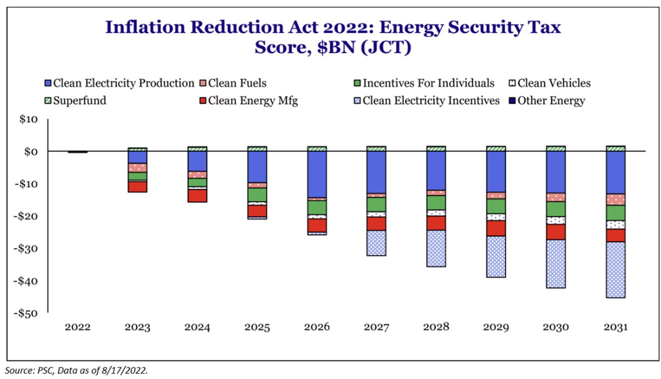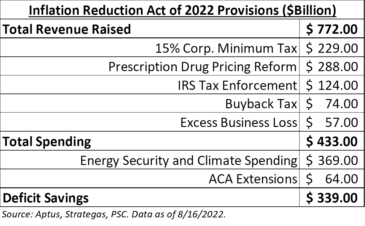 For the first time in a while, we have something to discuss coming out of Washington D.C. On Tuesday, President Biden signed into law the Inflation Reduction Act (“IRA”), which should be termed the Build Back Smaller Act, as the package is a slimmed down version of what Democrats have tried to push through Congress over the last year. I’ll be frank with you – the legislation does not match the name. Inflation will likely be more influenced by monetary policy and the money supply growth. Not to mention, most of the provisions included in the bill have nothing to do with inflation.