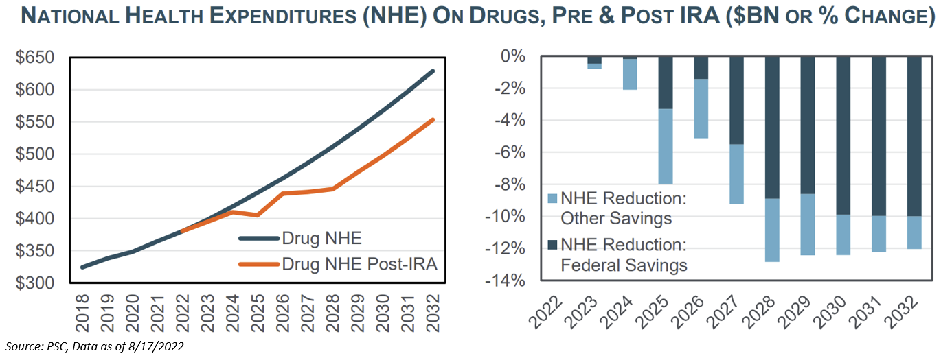 Congress enacted true pricing controls on some high-cost drugs covered under Medicare. Most of this will not go into effect until 2026, impacting the higher and older drugs. From there, the process ramps up quickly with 90-100 drugs that will see its price pushed down from 40%-60% by 2031. From a market perspective, I found it interesting that SMID-cap Biotech’s outperformed as the odds of the passage of this bill increased. My assumption is that the government overhang surrounding future pricing is now off the table, laying the groundwork for more M&A to occur in the space.