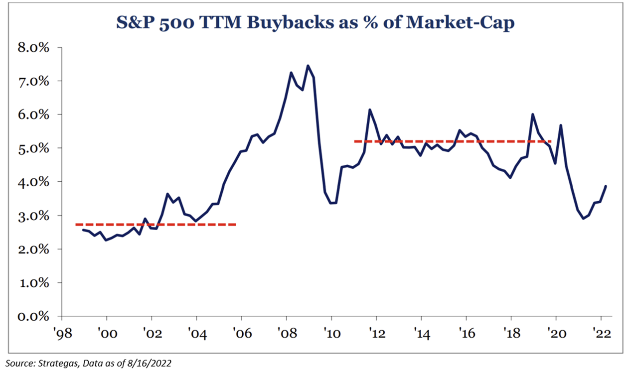 Our guess is that 1% will not make much of a difference. We can see companies pulling forward share buybacks this year because the bill doesn’t go into effect until 2023. But now that the tax is in place, it could always be increased. This will potentially make dividends preferable to buybacks over time.