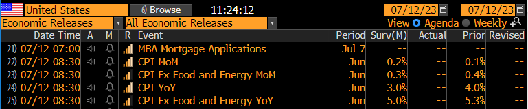 The June inflation print is coming on 7/12. The survey is expecting headline inflation to drop a full 100bps to 3.00% YoY number. They are also expecting a modest decline YoY in the core print to 5.0%.