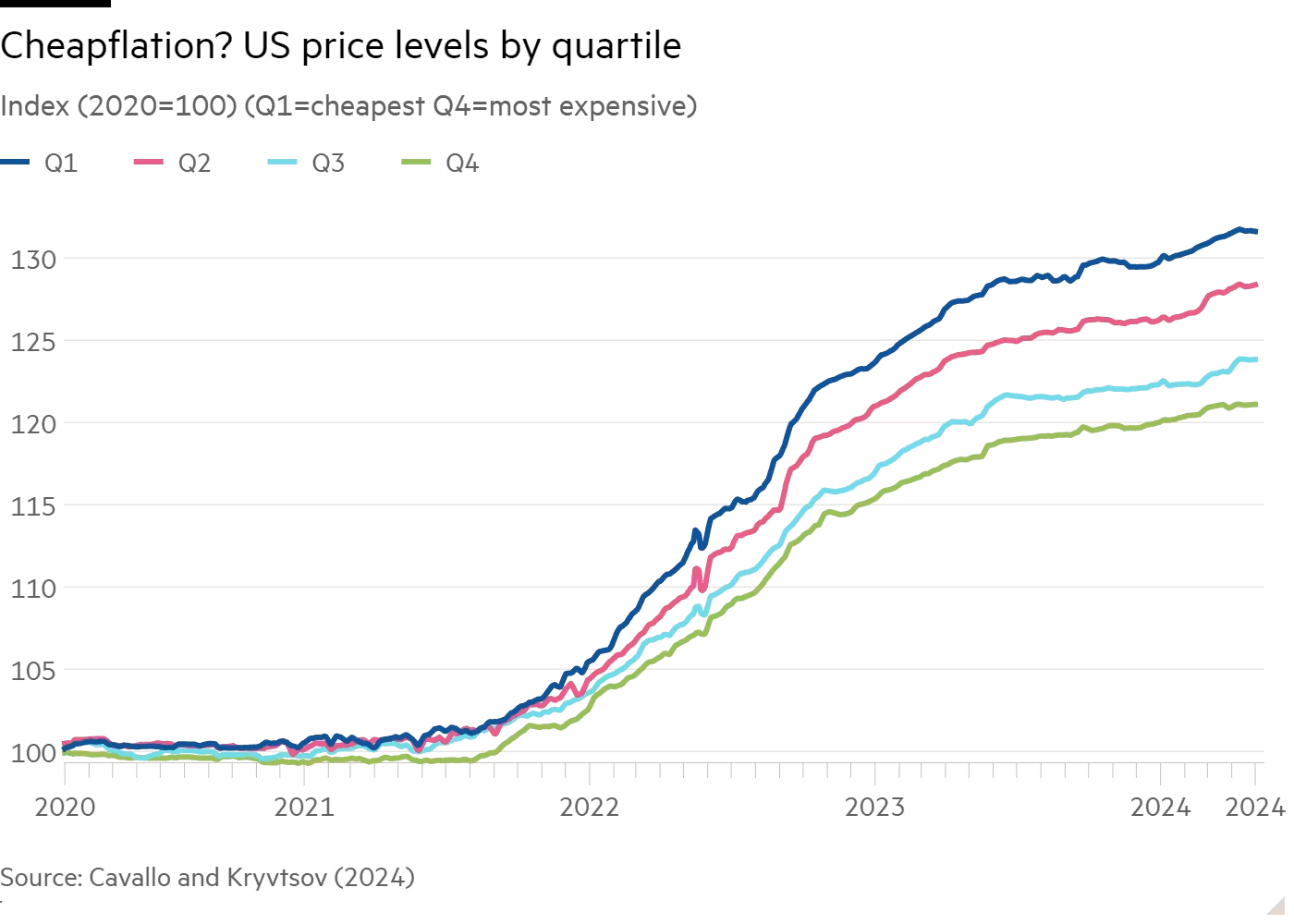 Brett: The shift higher in yields emerged from higher inflation, which has not been uniform; the price levels of the cheapest goods are rising the most. This indicates that inflation is hitting lower-income consumers harder, exacerbating economic inequalities and affecting consumption patterns