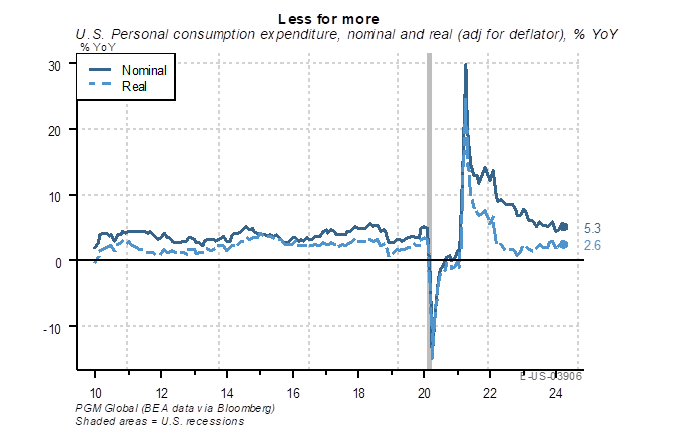 John Luke: Inflationary trends has caused a dislocation between real consumption, which has normalized, and nominal spending, which remains elevated, illustrating that inflationary pressures are not solely supply-driven