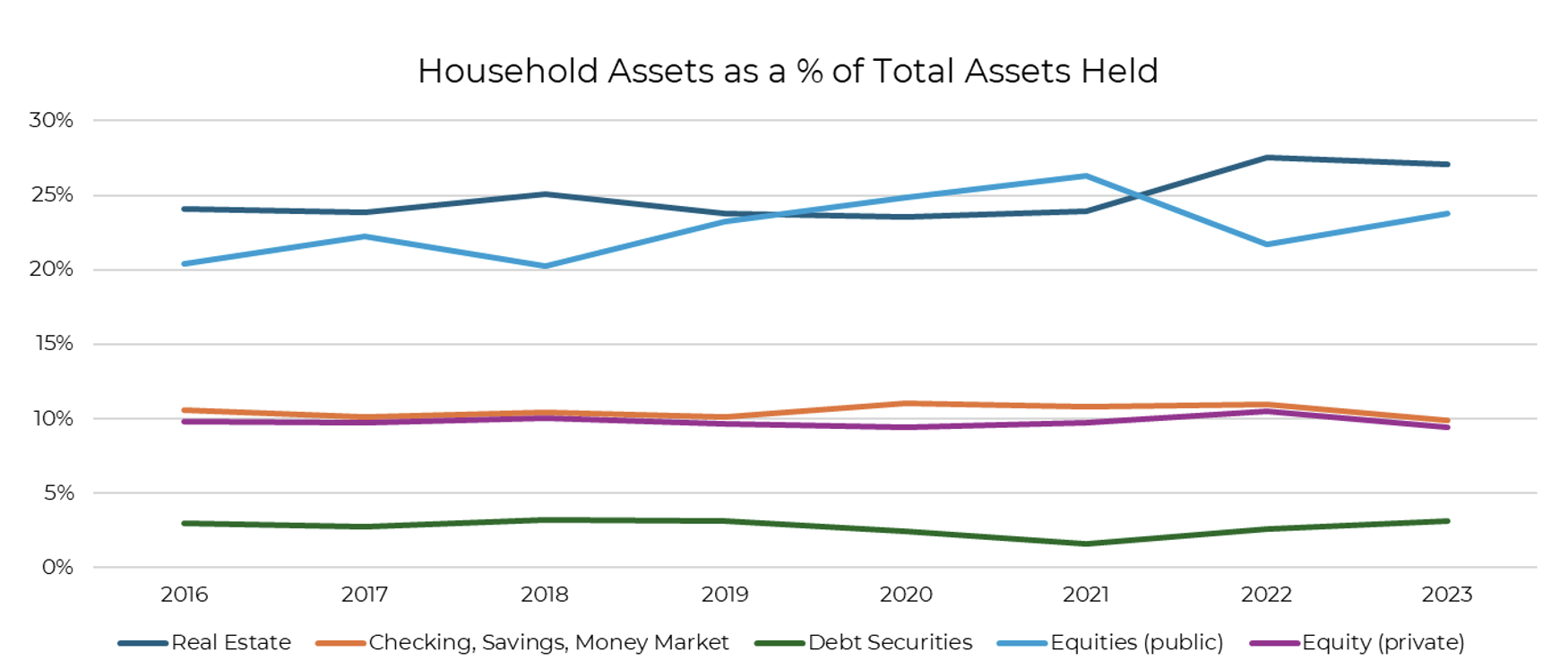 Brian: Despite headlines claiming otherwise, while households are holding more cash and equities in dollar terms, they aren’t holding more than usual as a percent of total assets. This stability in household balance sheets suggests a measured approach to financial management, even in uncertain times