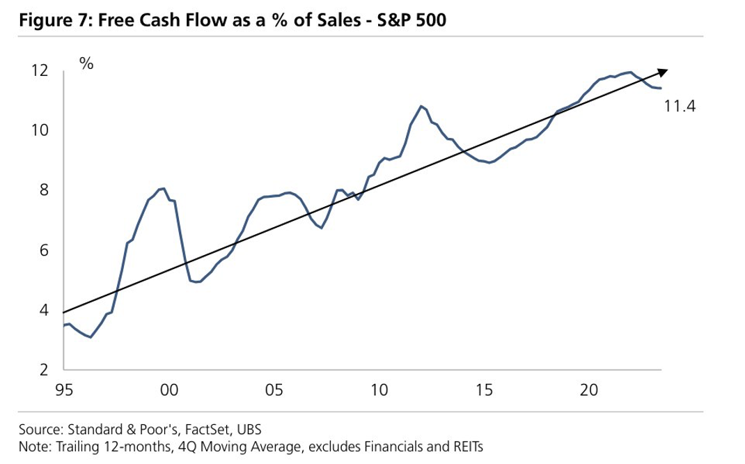 Brad: and as a whole, the S&P 500 valuation increase has run parallel with high cash flow generation as asset-light models expand