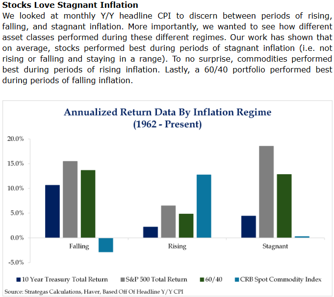 Brad: thankfully, stocks have historically done well when inflation flattened out