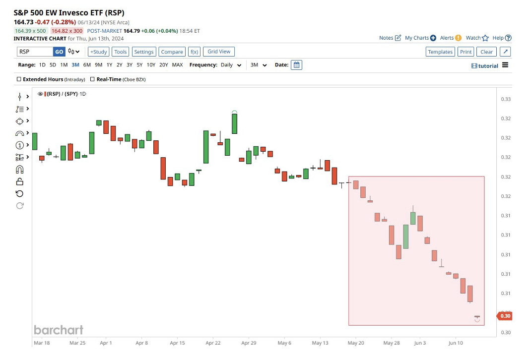 Brett: The broader market continues to lag what’s happening at the top end of market capitalization