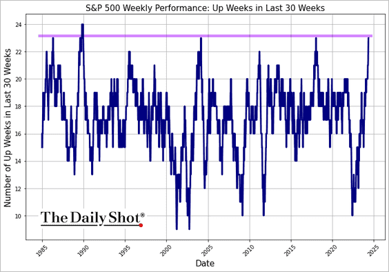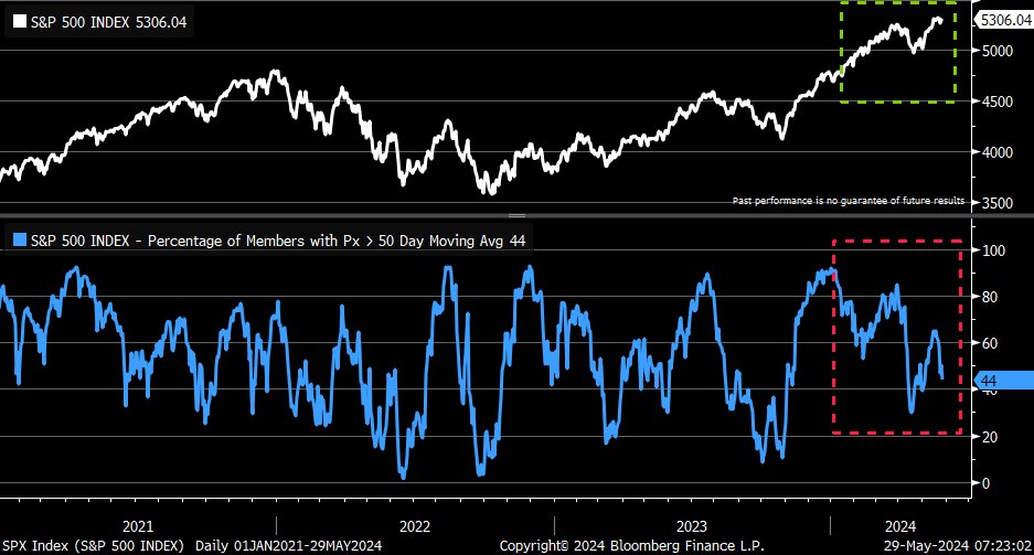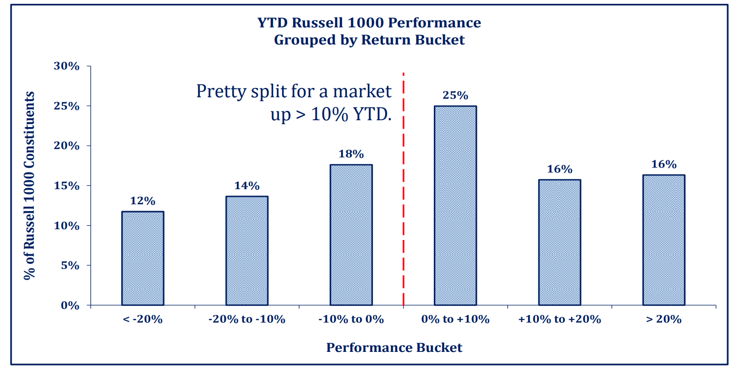Dave: Despite the great start to 2024 for the S&P 500, nearly half of the large-cap universe is negative for the year