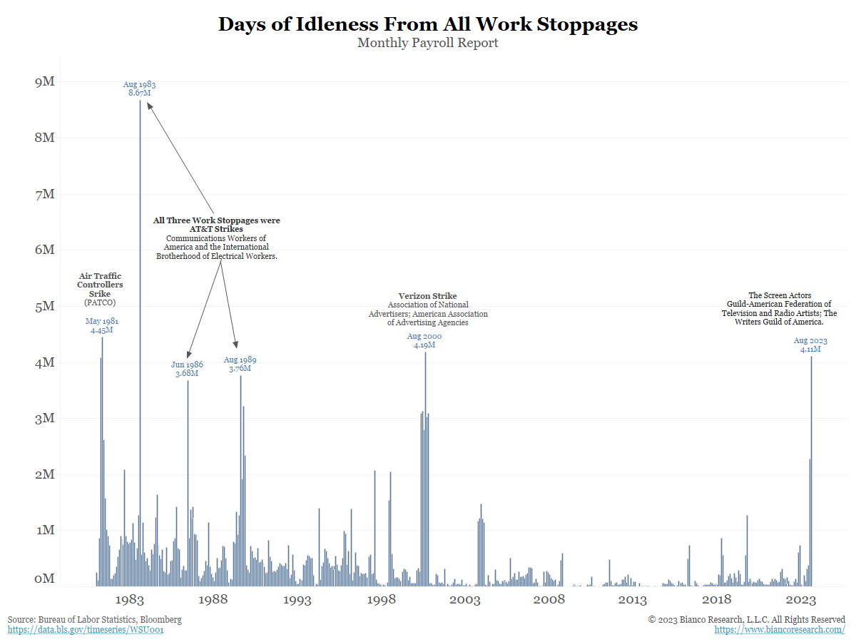 While restrictive monetary policy has helped avoid a wage-price spiral (so far), we can’t ignore the headlines concerning labor strikes and lofty union demands.