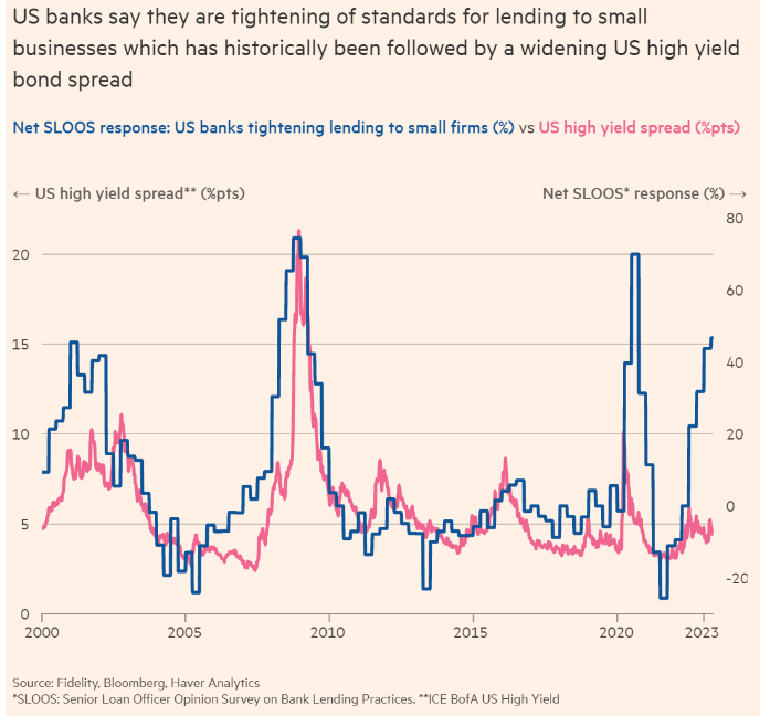 John Luke: Tightening lending standards at banks have historically led to widening credit spreads, again summarizing the disconnect between business sentiment and markets