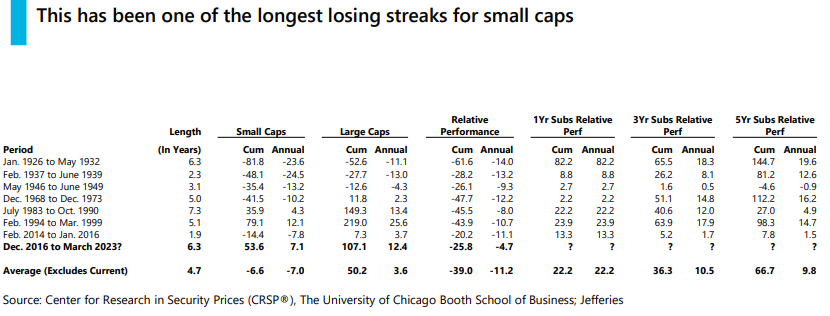 Brad: as evidenced by the extensive discount at which small-cap stocks are trading