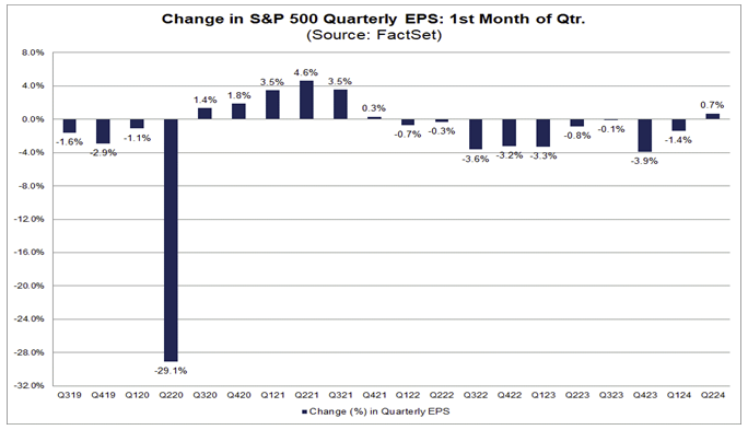 Brian: with the first instance of rising estimates in the 1st month of a quarter since 2021