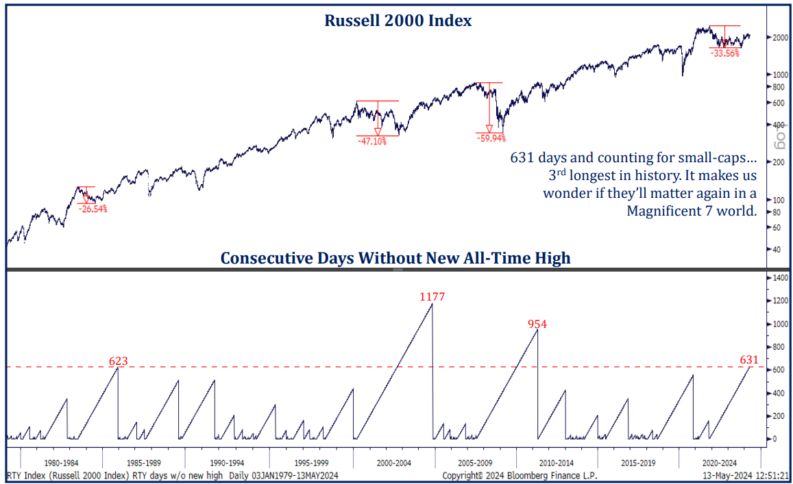Brad: creating one of the longer periods without highs for the widely-watched Russell 2000