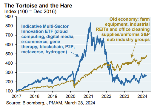 Dave: and you can see the inefficient distribution of flows into companies falling in the “expensive and low profitability” group