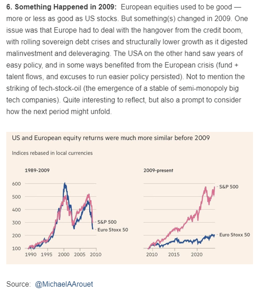 Brett: that said, the difference in central bank stimulus in the US vs. Europe has contributed to quite the difference in stock market outcomes