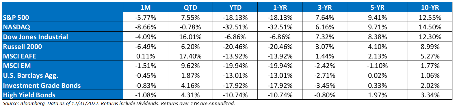 *Source: Bloomberg and FactSet, Data as of 12/31/22