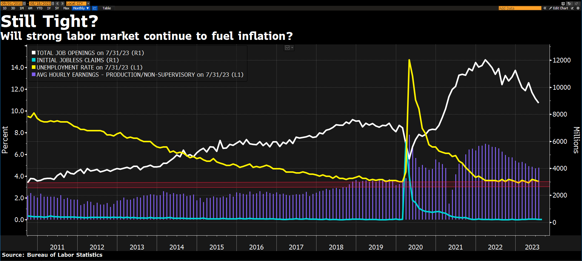 Fed Chair Powell’s message last week at Jackson Hole was direct. The Fed won’t be taking victory laps over inflation just yet. Powell noted “we are navigating by the stars under cloudy skies … we will keep at it until the job is done.” Reminds us of Volckers book, “Keeping at It”.