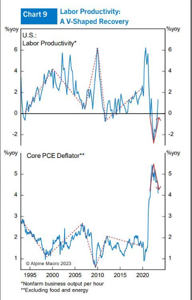 Currently, economies are seeing a re-ignition of productivity which historically has helped tame wage inflation pressures, keeping inflation muted. Time will tell if this is a new trend or just a mean reversion from all the hiring the past couple of years (new workers are simply less productive).