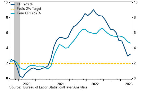 The Fed (and market) will be pleased to see only a modest rise in prices for the second straight month. The bottom line is 3-month and 6-month annualized rates for core inflation still stand at 3.1% and 4.1%. Headed in the right direction yet still well above the 2% target. In addition, the base effect will no longer provide an easy path to lower inflation as it has for most of the past year. It’s too soon to declare victory that the Fed has tamed inflation without sending the economy into a recession.