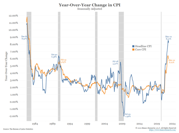 CPI rose 1.0% MoM and 8.6% YoY (a new high) in May. The core CPI again surged 0.6% MoM and 6.0%