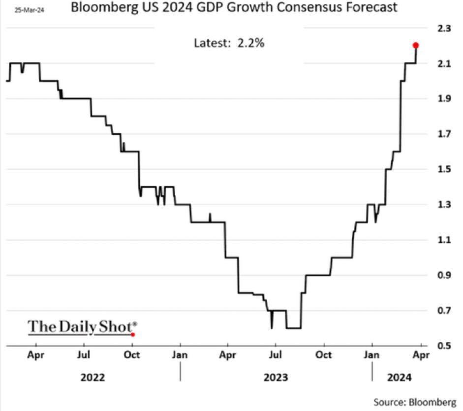 John Luke: Contrasting the delay of expected rate cuts is the persistent rise in GDP estimates