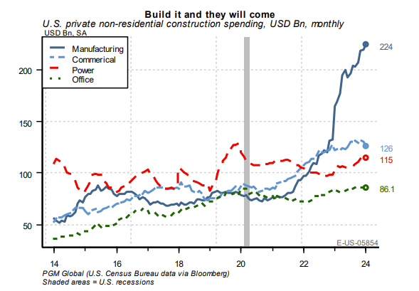 Joseph: High levels of construction in manufacturing facilities are surely part of the equation, running at a $2 trillion annualized pace