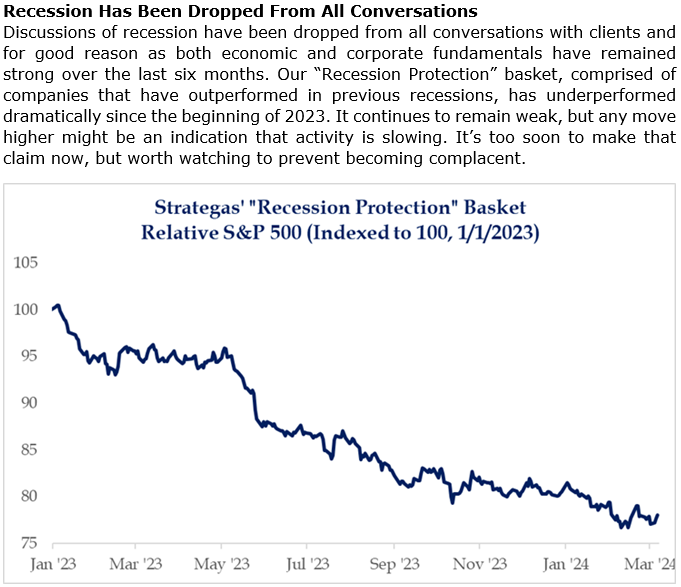 Brad: If a recession is coming, it’s not being reflected in the performance of normally defensive sectors