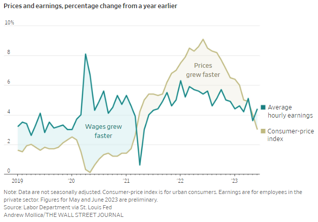 Federal Reserve Chair, Jerome Powell, signaled wage growth is too high for comfort in the Fed’s inflation-fighting campaign. While wage growth and an increase in pay for Americas workforce is generally a positive, the wage increases plus the steady decline in inflation (higher real incomes) continues to allow the consumer to purchase more expensive goods and services and in turn support the elevated inflation.