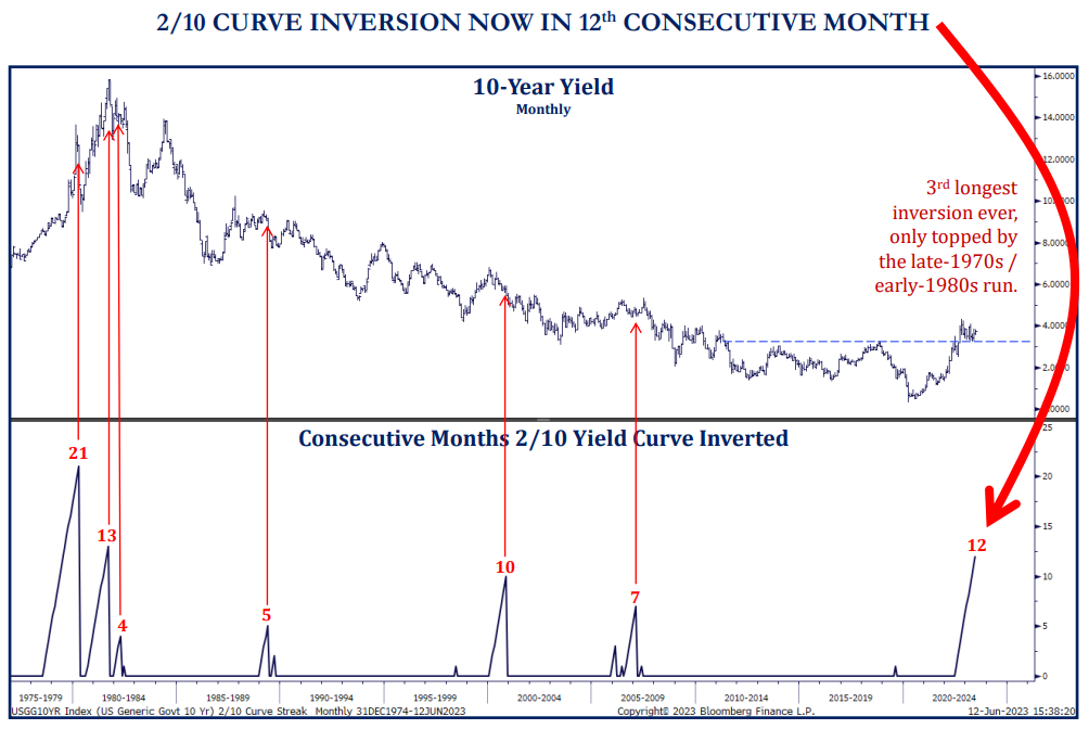 2/10 Year Yield Curve Inversion Remains Inverted for 12 Months