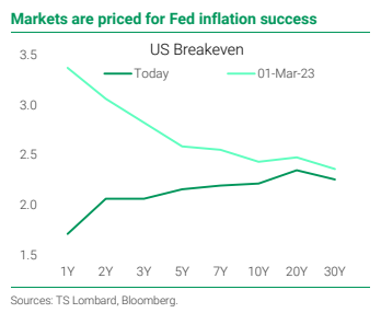 On that note, markets continue to price in victory. This is illustrated by inflation breakevens. The hawkish pause with guidance of two more rate hikes tells us that the fed isn’t ready to claim the win on inflation quite yet.