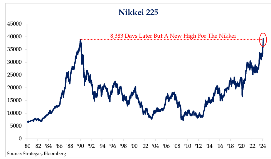 Dave: Wild to see, but the Japanese stock market has finally eclipsed its bubbly highs of 1989