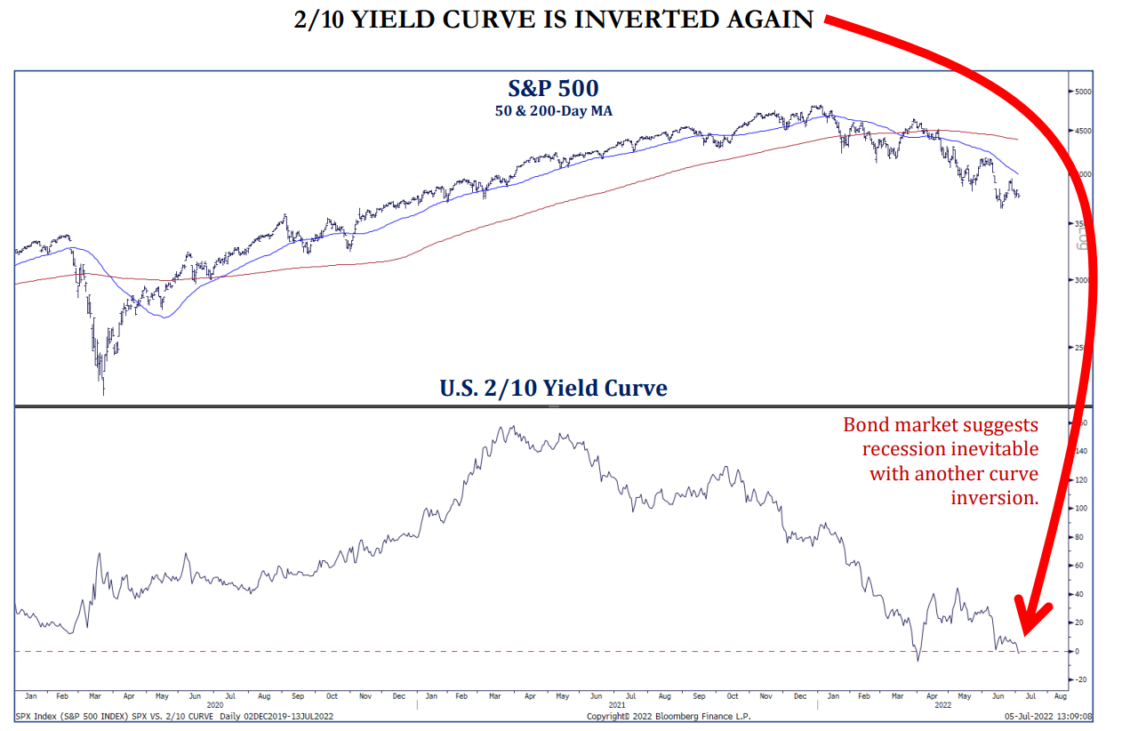 The yield curve has inverted temporarily several times this year, but it’s only been for a day or two and then bounced back to a more normal shape (front end lower than the long end). As the Fed continues to hike rates (raising rates at the front end of the curve) while the backend of the curve (much less controlled by the Fed) becomes more entrenched with recession fears (lower future growth & inflation) we could see a more legitimate, longer lasting inversion which would drive room for concern. Point being is up until now, the inversions while newsworthy, aren’t flashing a red signal… yet.