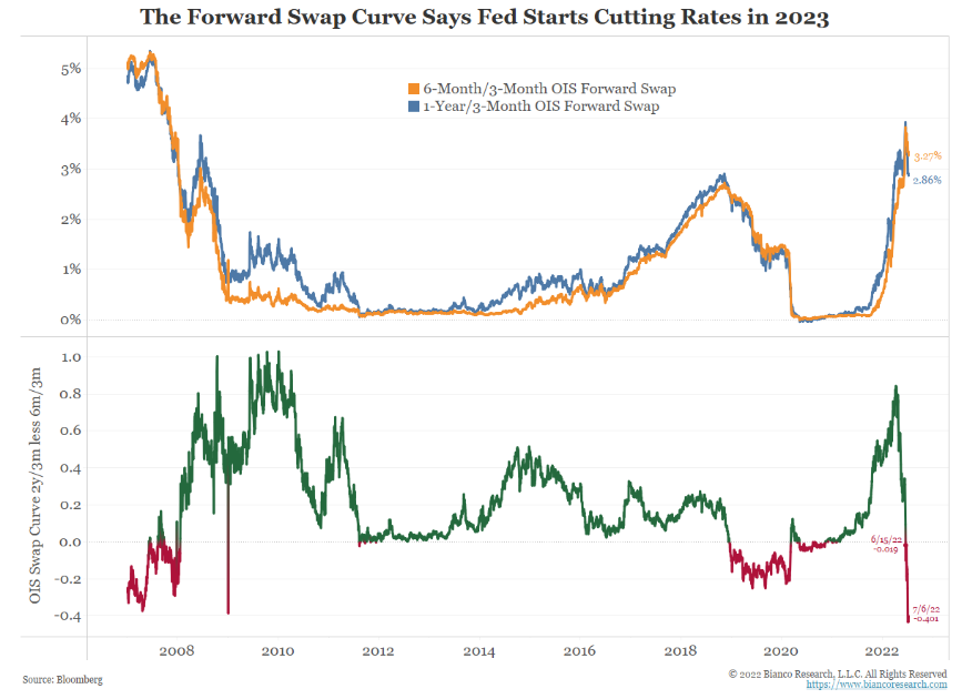 Now the forward curve seems to be saying that either inflation is going to recede rapidly in the coming months or the Fed will abandon its aggressive hawkish stance and respond to a weakening economy/possible recession.