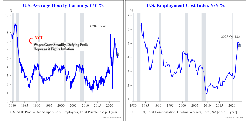 If productivity growth falls below unit labor costs on a persistent basis, inflationary pressure builds as firms struggle to pass on wage costs (i.e., they are getting less output for a higher cost). Ultimately the Fed needs some relief on the wages front before declaring victory.