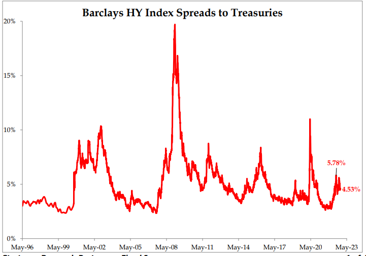 Given where we are in the cycle and the likely implication for less creditworthy borrowers from both a weaker economy and higher interest rates, credit spreads have remained resilient. We believe that high yield investors are baking too much impact from the increase in risk-free yields into overall nominal yields, while forgetting there are risks embedded within junk bonds.