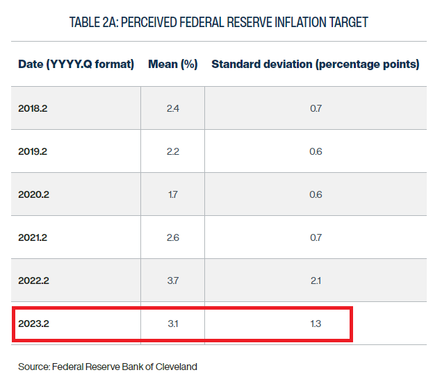 In fact, the Cleveland Fed’s survey on the inflation expectations of corporate executives indicates that CEOs are beginning to think Fed has moved its inflation target up to 3%. Note in the table below that the inflation expectations are both above target and have doubled in standard deviation relative to their pre-Covid average.