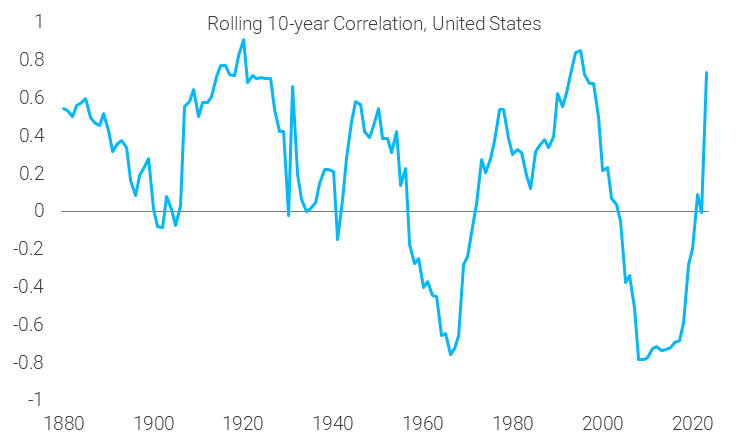 Tack on to that positive correlation with equities and it begs the question as to whether long duration bonds can be a reliable “safety” holding within portfolio construction.