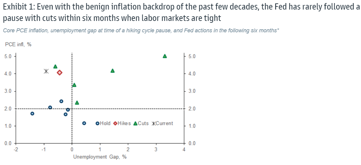 While we agree the economy is slowing down, we still think the Fed has more work to do in anchoring inflation back to a 2% level. This very likely means higher for longer.