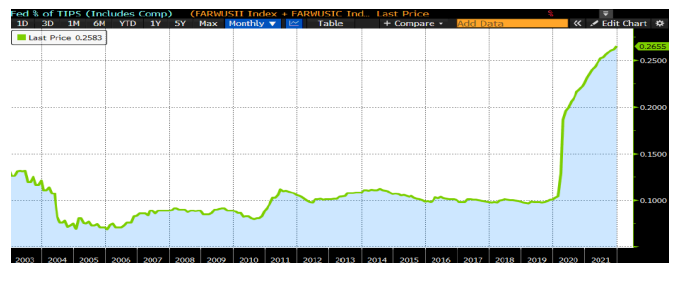 Fed Ownership of TIPs Following Covid Ballooned