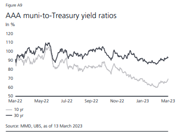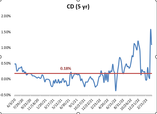 Remember, CDs are FDIC insured up to $250k. The recent uptick in spreads could create an interesting opportunity to ladder out CDs for clients looking for defensive, insured interest income on their capital. Lastly, considering the lifeline thrown to banks with the new BTFP Liquidity facility in place, I don’t think this opportunity will last forever.