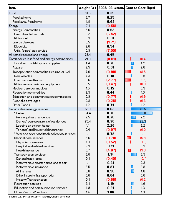 Consumer prices rose in February by the most in 5 months, although the move was roughly in line with expectations. Headline CPI number moved lower to 6.0% YoY as the February 0.4% print replaced last year’s 0.7% print.