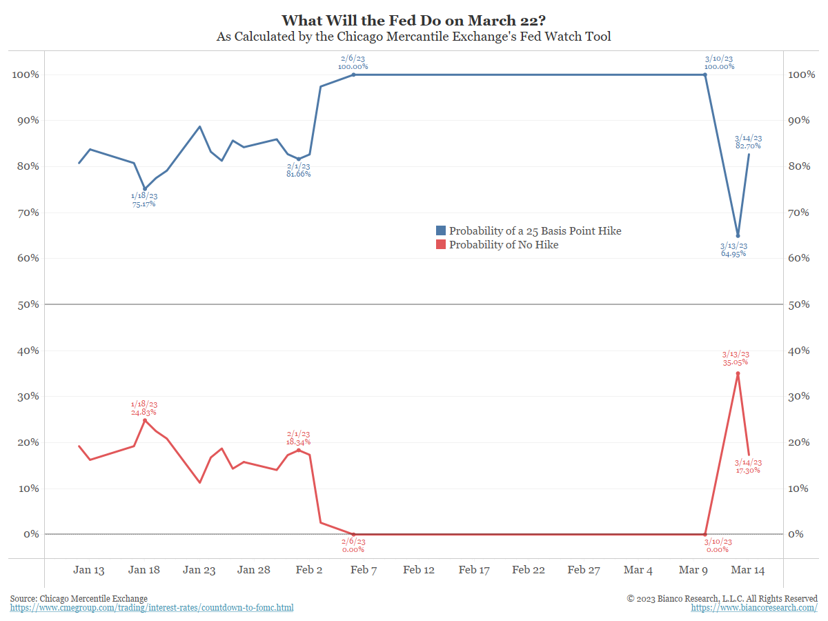 Bottom line, we believe the Fed will want to be like the Bank of England (BoE) was last fall as they utilize their balance sheet to put out an “isolated” fire while continuing to keep on with the inflation fight. The Fed still has a job to do and we’re not prepared to say we’ve reached peak in rates, or that we’ve won the battle versus inflation. The Fed has tools to shore up the banking system (demonstrated the last couple days), and it is still top priority to them to keep inflation expectations anchored at FOMC next week. While the move in rate expectations yesterday was eye-opening, we expect the Fed to keep on the hiking train with 25bps next week.