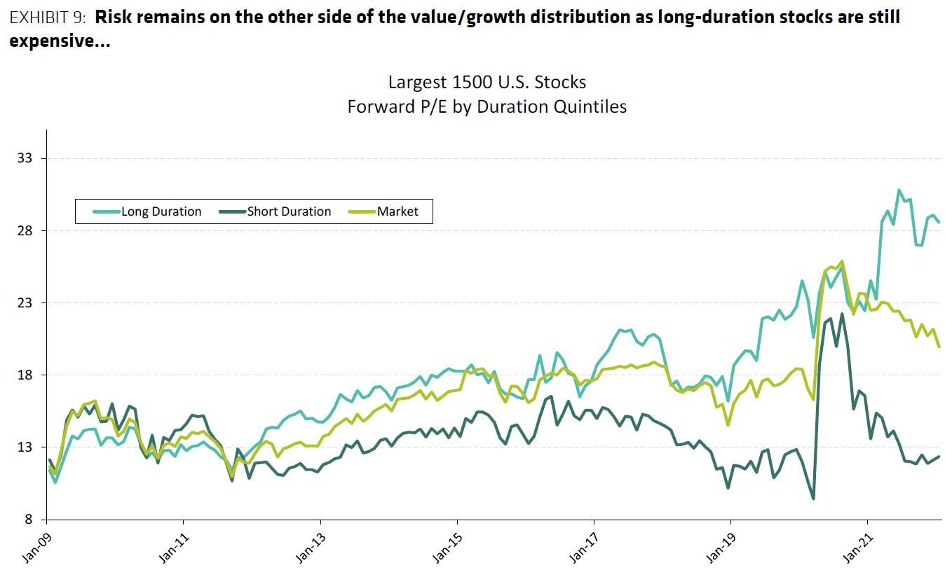 Firstly, if real yields continue to normalize as inflation moderates, we believe Value is likely to outperform further. Secondly, the earnings momentum which Value had all throughout 2021 is still in place for 2022. Cheap stocks earnings are still being net upgraded more than expensive stocks. The earnings revisions, on balance, for Energy, Materials, Financials is still in positive territory – meaning these stocks are being upgraded faster than Growth stocks. Valuation multiples for the Value sectors have not yet recovered to pre-pandemic levels, despite the rotation- something that can’t be said for Growth. Thus, this is why we have seen this parabolic shift in relative performance YTD.