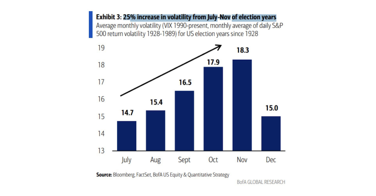 Truthfully, I don’t believe that the market starts to focus on the election until after Labor Day which is why a lot of the above indicators only focus on the 3 months preceding the election. Secondly, market volatility levels tell you the same thing: